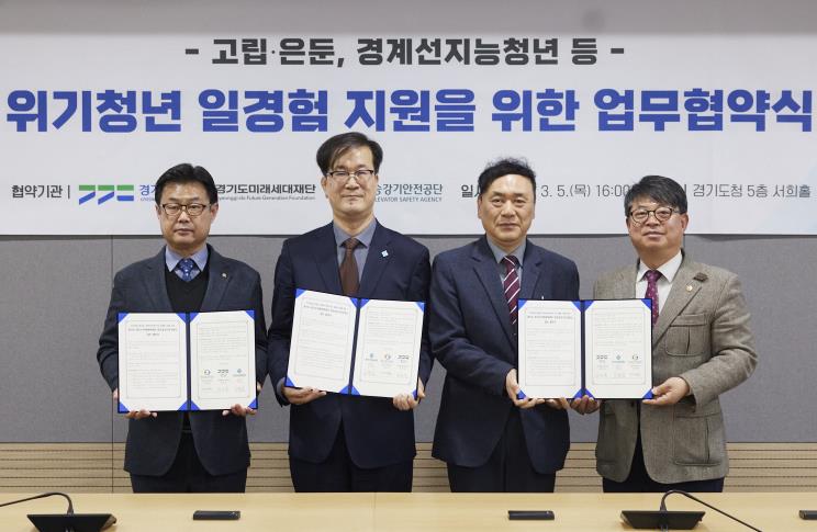 [뉴스서치] 경기도와 경기도미래세대재단, 한국승강기안전공단 경인지역본부는 5일 경기도청 서희홀에서 ‘위기청년 일경험 지원을 위한 업무협약’을 체결했다.