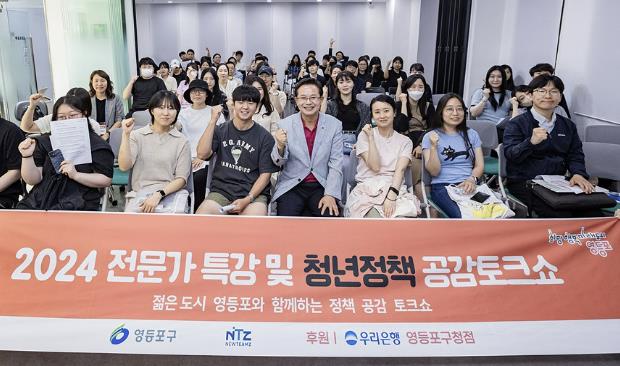 ▲ ‘청년과의 소통 간담회’에 참석한 최호권 영등포구청장(앞줄 오른쪽에서 네 번째) |