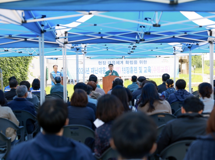 또 양수기와 수중펌프 사용법을 안내한 후 주민들이 직접 참여해 실습해보고, 목감천 차수판을 설치하는 훈련을 시행했다.
