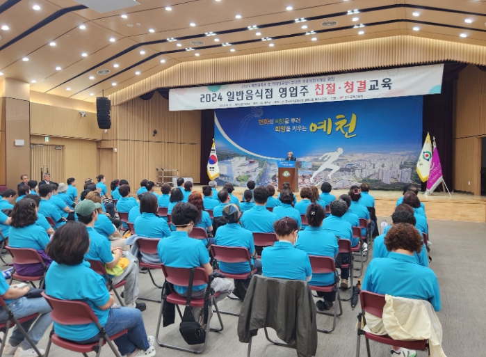 [뉴스서치] 예천군은 15일 오후 군청 대강당에서 일반음식점 영업주 100명을 대상으로 친절 ․ 청결 교육을 실시했다.