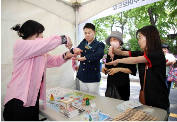 ▲ 오언석 도봉구청장이 지난 4월 19일 열린 제44회 장애인의 날 기념행사에서 주민들과 함께 수화를 배우고 있다 |