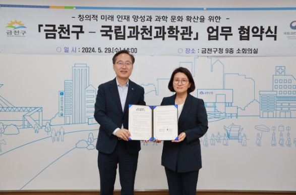[뉴스서치] 금천구는 창의적 과학인재를 양성하고 지역 내 과학문화를 확산하기 위해 29일 국립과천과학관(관장 한형주)과 업무협약을 체결했다고 밝혔다.