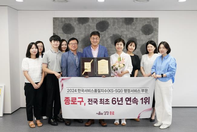 [뉴스서치] 종로구가 한국표준협회 주관 '한국서비스품질지수(KS-SQI)' 지방자치단체 부문에서 전국 최초 6년 연속 1위의 영예를 안았다.