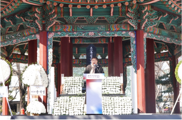 ▲ 2024년 탑골공원에서 열린 3.1절 기념식 및 담장 허물기 퍼포먼스 모습 |