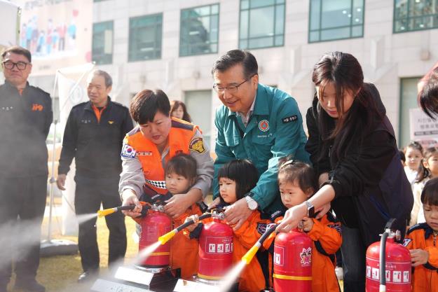 ▲ 2023년 안전 체험 한마당에서 진행된 물소화기 작동 체험 모습 |