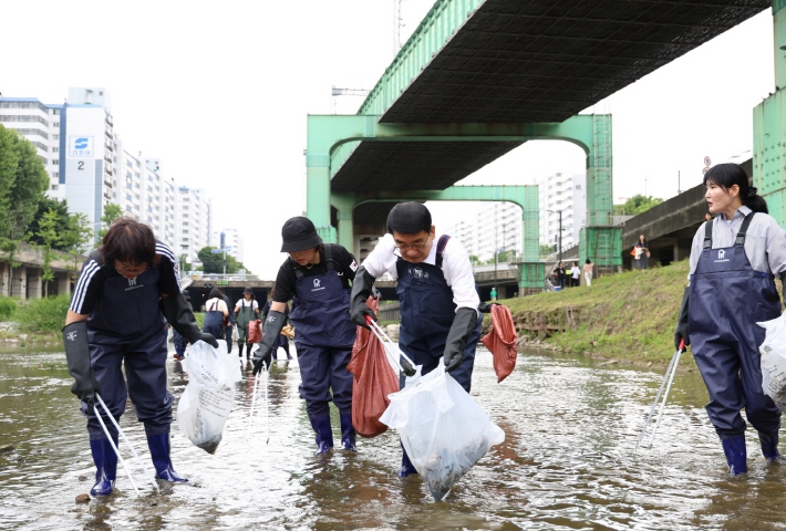 문헌일 구로구청장과 탄소중립시민실천단 100여 명은 지난달 24일 안양천을 청소한 데 이어 이날은 도림천 청소에 나섰다.
