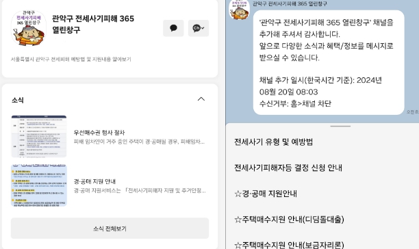 ▲ 카카오톡 채널에 개설된 관악구 전세사기피해 365 열린창구 |