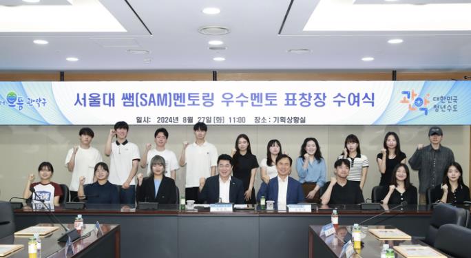 관악구가 지난 27일 ‘서울대 쌤(SAM) 멘토링’ 우수 멘토의 공로를 인정하고 감사를 전하고자 표창장을 수여했다.