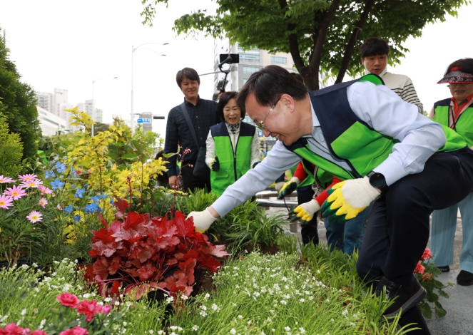 ▲ 유성훈 금천구청장이 행사에 참여해 정원을 가꾸고 있다 |