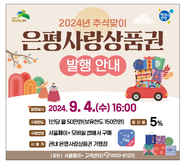 이번 추석 맞이 은평사랑상품권은 9월 4일 오후 4시부터 구매할 수 있다.