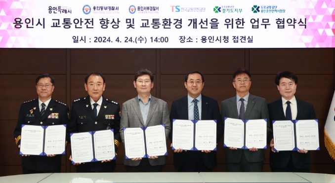 [뉴스서치] 용인특례시는 안전한 교통문화를 정착시키기 위해 용인동·서부경찰서와 한국교통안전공단 경기남부본부, 도로교통공단 경기도지부, 도로교통공단 용인운전면허시험장 등 5개 기관과 ‘용인시 교통안전 향상 및 교통환경 개선을 위한 업무협약’을 맺었다고 25일 밝혔다.