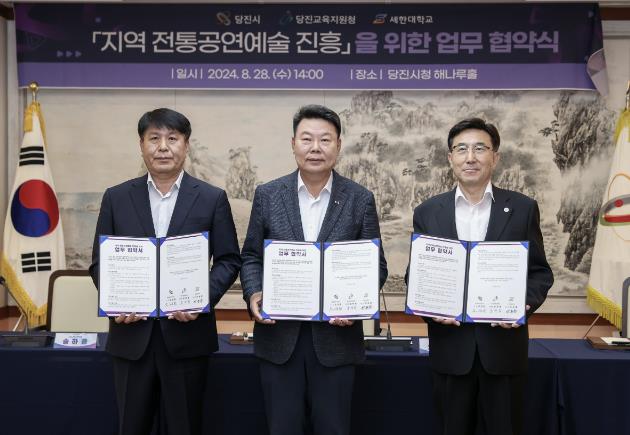 이번 협약은 지역 내 전통공연예술 진흥을 위한 것으로, 예로부터 우수한 농악이 자리 잡은 당진시의 전통문화를 계승하고 지역 내 인재 양성을 위해 세 기관이 상호 협력하기로 했다.