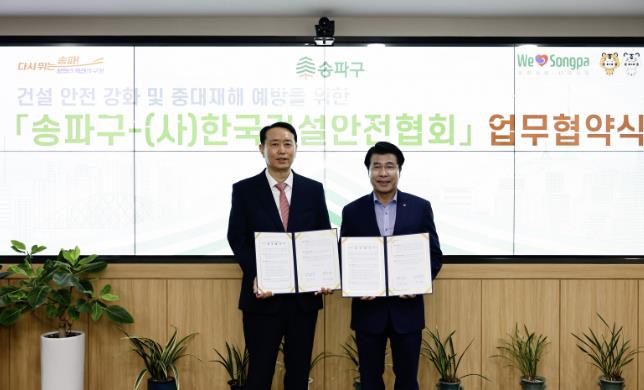 서강석 송파구청장은 “건설안전 분야의 기술과 권위를 가진 협회와 협력하게 되어 기쁘게 생각한다”며 “이번 협약이 도시의 가장 중요한 가치인 ‘안전’을 강화하는 전환점이 되길 바라며, 앞으로도 긴밀한 상호협력을 통해 구민의 인명과 재산을 보호하는 데 최선을 다하겠다”고 전했다.