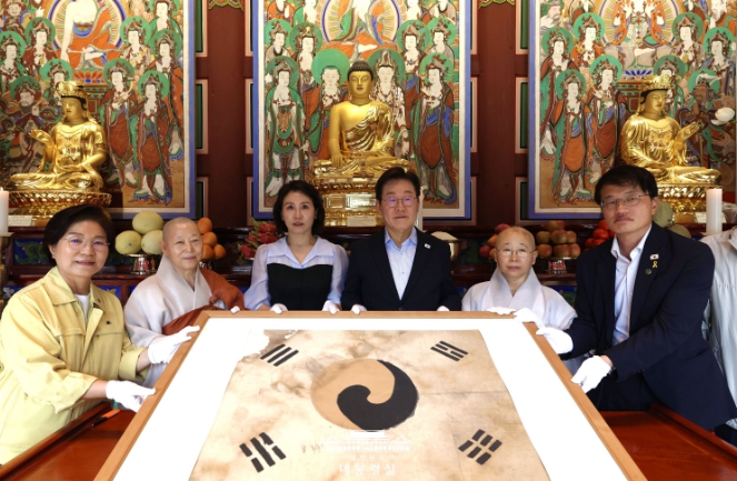 [뉴스서치] 이재명 대통령 내외는 17일 오후 서울 은평구에 위치한 진관사를 방문했다. 진관사는 일제강점기 일장기 위에 먹물로 태극문양과 4괘를 덧칠해 만든 '진관사 태극기'와 독립신문이 발견된 역사적인 사찰이다.