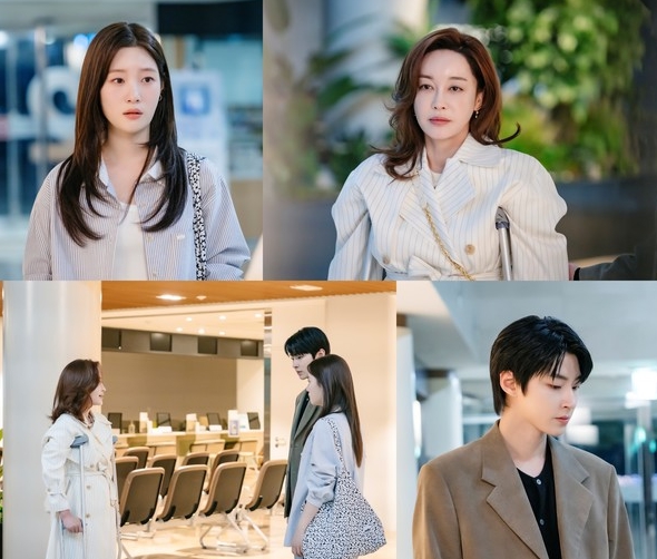 이와 함께 공개된 사진 속에는 김산하와 권정희, 그를 찾아왔다가 두 사람을 마주하게 된 윤주원 사이의 불편한 공기가 고스란히 담겨있다.