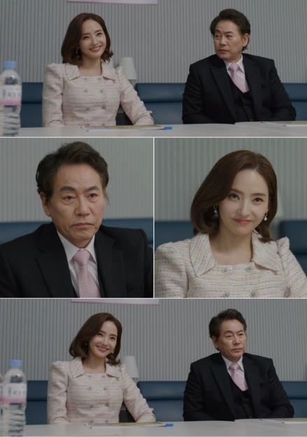 또 다른 스틸 속 흐뭇한 웃음을 지어 보이는 정인과 심기가 불편해 보이는 태창의 신경전은 손에 땀을 쥐게 만든다. 여유로운 정인의 태도가 남편 태창의 도발에 반격할 것을 예고, 부부 사이뿐만 아니라 회사 경영에도 팽팽한 대치를 벌인다.