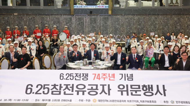 아울러 20일 케이터틀에서는 마포구보훈회관과 6.25 참전유공자회 마포구지회 주최로 위문행사가 열려 지역 내 백여 명의 6.25 참전유공자가 참석, 청소년 태권도·성악·군악대 공연과 기념식, 6.25전쟁무공수훈자 훈장전수, 6.25의 노래 제창 등을 함께했다.