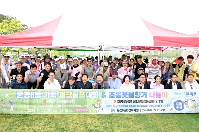 [뉴스서치] 파주시 운정6동 가족 파크골프 대회와 초롱꽃물향기 나들이가 지난 22일 우천 속에도 지역주민을 비롯해 파주시장, 지역 인사 등이 참석한 가운데 성황리에 마쳤다.