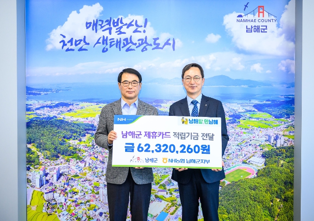 남해군에 전달된 적립기금은 지난해보다 197만 5000원이 증가한 6232만원으로, 보물섬남해사랑카드, 보조금카드 등 7종의 제휴카드 이용실적에 따른 일정 비율의 금액이다.