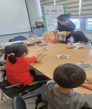 ▲ 성동구 드림스타트 아이들이 ‘도서관과 함께 책읽기’ 프로그램에 참여하는 모습 |