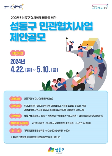 ▲ 성동구가 오는 5월 10일까지 2025년 협치의제 발굴을 위한 온라인 제안공모를 실시한다. |