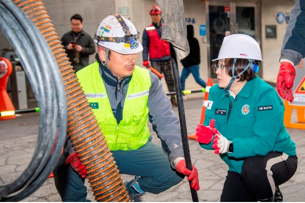 ▲ 3월 박희영 용산구청장이 용문시장일대 하수관로 준설 현장에서 작업자로부터 작업현황을 보고 받고 있다 |