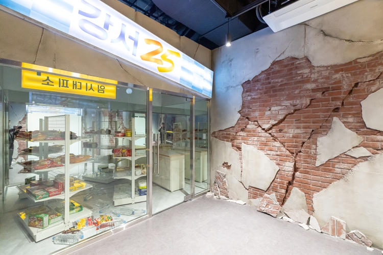 지진 피해 현장 등을 실감 나게 재현해 놓은 재난안전 체험존은 지진 상황을 직접 느껴볼 수 있는 자연재난안전 체험실과 소화기, 완강기 체험을 할 수 있는 화재안전 체험실, 태풍의 위력을 경험해 볼 수 있는 풍수해 안전 체험실로 구성됐다.