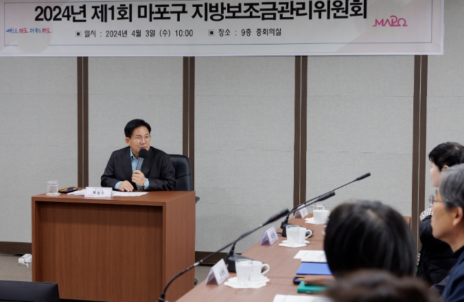 ▲ 2024년 제1회 마포구 지방보조금관리위원회에 참석해 인사말을 전하는 박강수 마포구청장 |