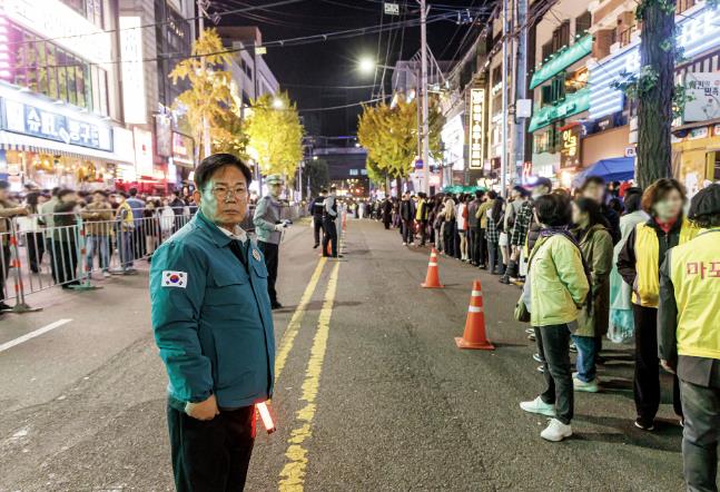 ▲ 지난해 10월 핼러윈 데이를 앞둔 주말, 박강수 마포구청장이 홍대 레드로드 잔다리로(클럽거리)에서 인파 사고에 대비한 안전 관리에 나섰다. |