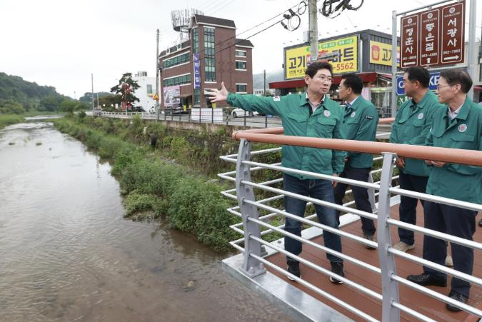 ▲ 이상일 용인특례시장이 9일 수지구 고기동 고기교 주변을 방문해 호우 대비 현장점검을 했다. |