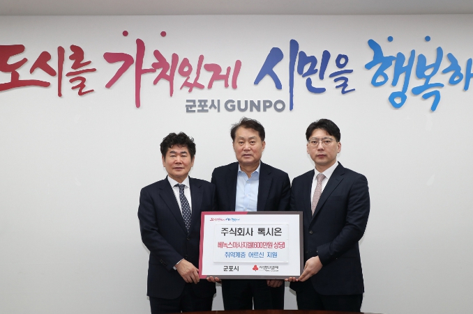 이날 기탁식에는 하은호 군포시장, ㈜톡시온 최은호 대표, 이석진 군포산업진흥원장 등이 참석했다.