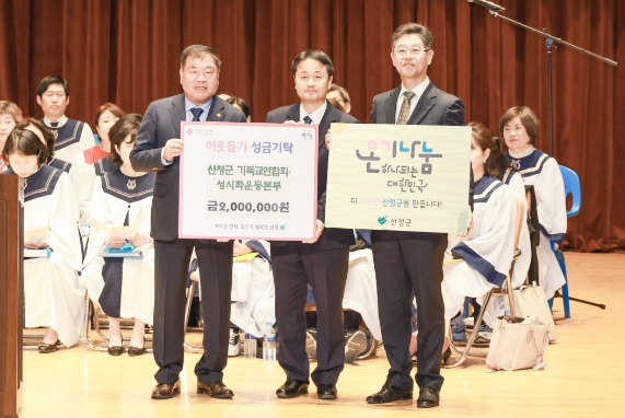 [뉴스서치] 산청군은 지난달 31일 산청군기독교연합회와 산청군 성시화운동본부가 부활절 연합예배에서 이웃돕기 성금 200만원을 전달했다고 1일 밝혔다.