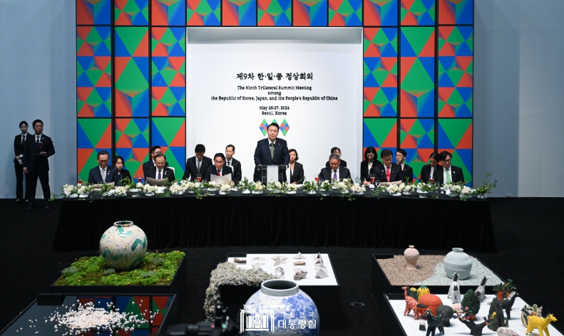 [뉴스서치] 윤석열 대통령은 5월 26일 서울에서 제9차 한·일·중 정상회의에 참석한 기시다 일본 총리와 리창 중국 총리를 비롯한 3국 대표단을 환영하는 만찬을 함께했다.
