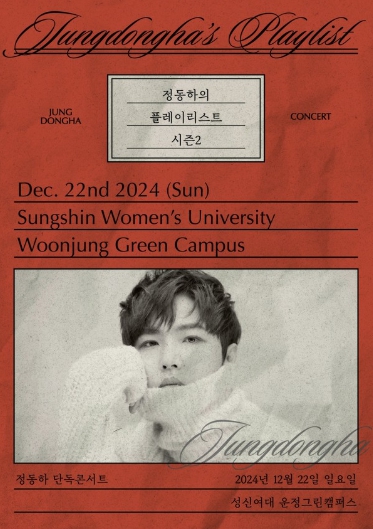 한편, 정동하 단독 콘서트 ‘정동하의 PLAYLIST 시즌2‘의 티켓은 네이버 N예약과 티켓링크, 인터파크 티켓을 통해 예매가 가능하다.