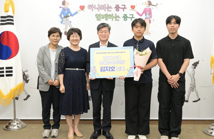 [뉴스서치] 중구의 청소년을 대표하는 새로운 얼굴이 등장했다. 서울 중구가 지난 8일 구청장실에서 중구청소년센터 명예 청소년관장 위촉식을 열고 김지호(16세, 장충고) 제1대 명예 청소년관장에게 위촉장을 수여했다.