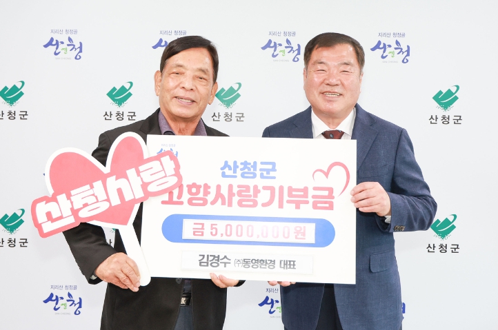 [뉴스서치] 산청군은 김경수 ㈜동영환경 대표가 고향사랑기부금 500만원(개인 연간 최고 기부액)을 전달했다고 27일 밝혔다.