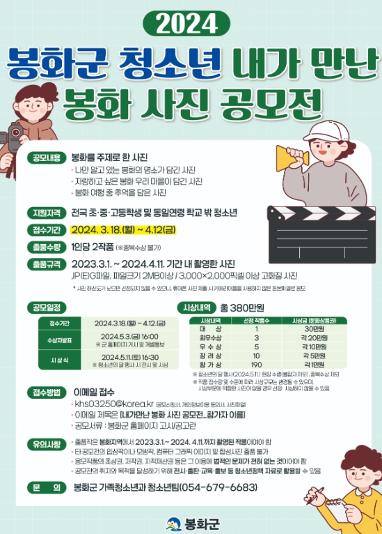 [뉴스서치] 봉화군은 오는 4월 12일까지 2024 봉화군 청소년 내가 만난 봉화 사진 공모전을 개최한다.