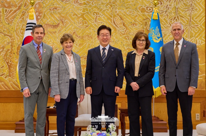 [뉴스서치] 이재명 대통령은 4월 2일 오후 청와대에서 진 섀힌(Jeanne Shaheen) 상원 외교위원회 간사 등 공화·민주 양당 의원으로 구성된 미국 상원의원 대표단을 접견했다. 이 대통령과 미 대표단은 한미동맹 및 한반도 문제를 비롯해 중동 전쟁의 안보적·경제적 파장과 대응 방안에 대해 심도 있는 의견을 교환하고, 향후 경제적 여파 대응 과정에서 한미가 긴밀히 소통해 나가는 것이 중요하다는 점에 뜻을 같이 했다.