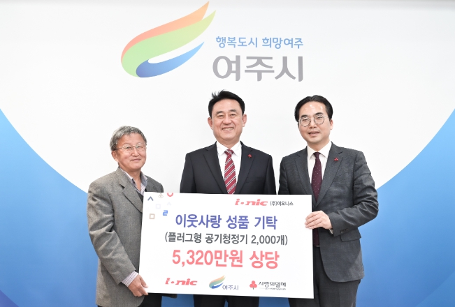 [뉴스서치] ㈜이오니스에서 지난 27일 여주시를 방문하여 관내 저소득 어르신을 위한 이웃돕기 현물 플러그형 공기청정기 2,000개(5,320만원 상당)을 기탁하였다.