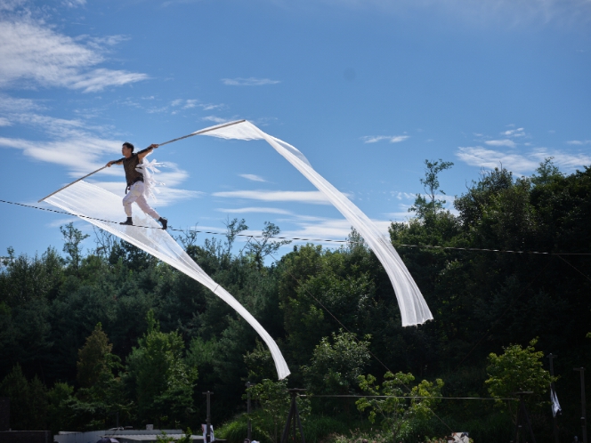 ‘흐름’은 아시아의 독보적인 시어휠·파이어 서커스 아티스트인 라이 이(Lai Yee, 홍콩)가 시적인 움직임으로 만드는 서커스 퍼포먼스다. 수련과 포기를 거치며 성취하는 누군가의 여정에 관한 이야기로 유리구슬을 사용하는 콘택트 저글링, 파이어댄스, 시어휠 등 퍼포먼스가 관객들의 눈길을 사로잡는다.