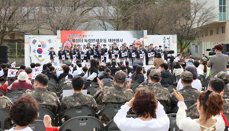 [뉴스서치] 계룡시는 지난 27일 두마초등학교에서 ‘제105주년 두계장터 4.1 독립만세운동’ 재현행사를 개최했다고 밝혔다.