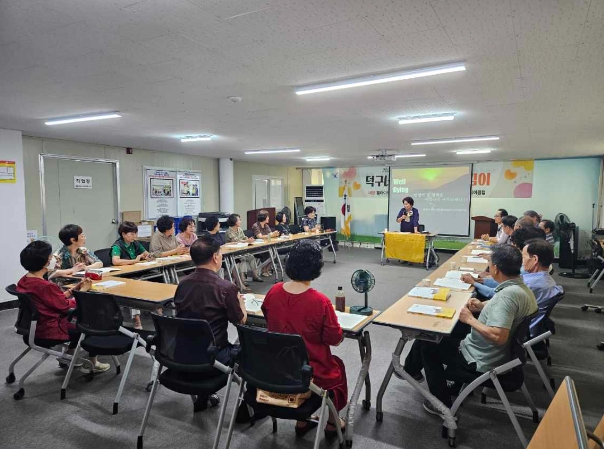 ▲ 대전 대덕구(구청장 최충규)가 60세 이상 은퇴자 어르신을 대상으로 한 ‘웰라이프 지도자 양성 과정’을 운영한다. 어르신들이 1일 대덕구시니어클럽에서 강의를 듣고 있다. |