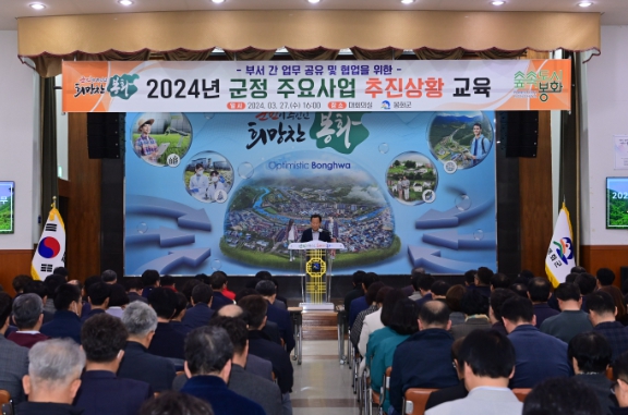[뉴스서치] 봉화군은 지난 27일 군청 대회의실에서 부서장 및 팀장 160여 명을 대상으로 ‘2024년 군정 주요사업 추진상황 교육’을 실시했다.