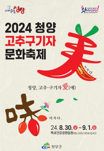 [뉴스서치] 청양 관광객 500만 시대를 여는 중추적인 역할을 할 ‘2024 청양고추구기자 문화축제’가 오는 30일부터 9월 1일까지 3일간 청양읍 백세건강공원 일원에서 개최된다.