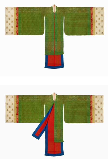 원삼처럼 양옆이 트인 형태의 겉옷인 ‘당의’ 역시 부금 장식과 용보(龍補)를 갖춘 전형적인 왕실 당의로서, 특히 용보가 온전히 남아 있다는 점에서 지정 가치가 높다.