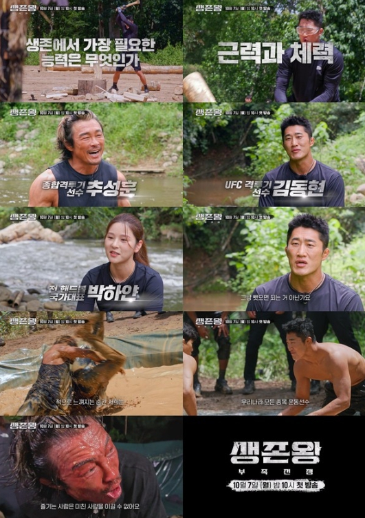대한민국 최고의 생존왕을 가리는 TV CHOSUN 신규 예능 '생존왕 : 부족전쟁'은 10월 7일(월) 밤 10시 첫 방송된다. 글로벌 OTT 넷플릭스에서도 공개될 예정이다.