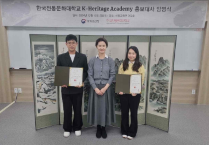 지난 12월 13일 진행된 홍보대사 위촉식을 시작으로, 두 학생은 앞으로 국내외의 외국인 커뮤니티에서 'K-헤리티지 아카데미'와 한국전통문화대학교 K-Heritage국제센터에서 내년에 새롭게 선보일 예정인 외국인 대상의 한국어 교육 프로그램 '한국어학당' 등을 비롯해 한국의 국가유산과 전통문화의 인식 제고를 위한 다양한 홍보활동에 나설 예정이다.