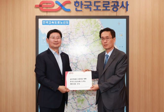▲ 이상일 용인특례시장이 지난해 9월 한국도로공사 본사를 방문해 함진규 사장에 현안사항을 건의했다 |