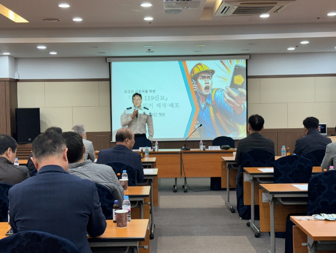 교육내용은 ▲화재 초기대응 교육 ▲심폐소생술 및 응급처치교육 ▲ ‘다언어 외국인 119신고’ 스티커 시책 설명 ▲ 외국인 근로자 신고 방법 교육 등이다.