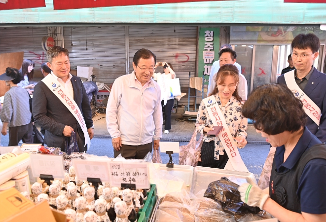 이현재 시장은 이날 행사 참석자들과 함께 오후 4시부터 6시까지 2시간 동안 온누리상품권과 지역화폐(하머니)를 이용해 일상물품을 구매하며 전통시장 활성화를 위한 홍보활동을 펼쳤다.
